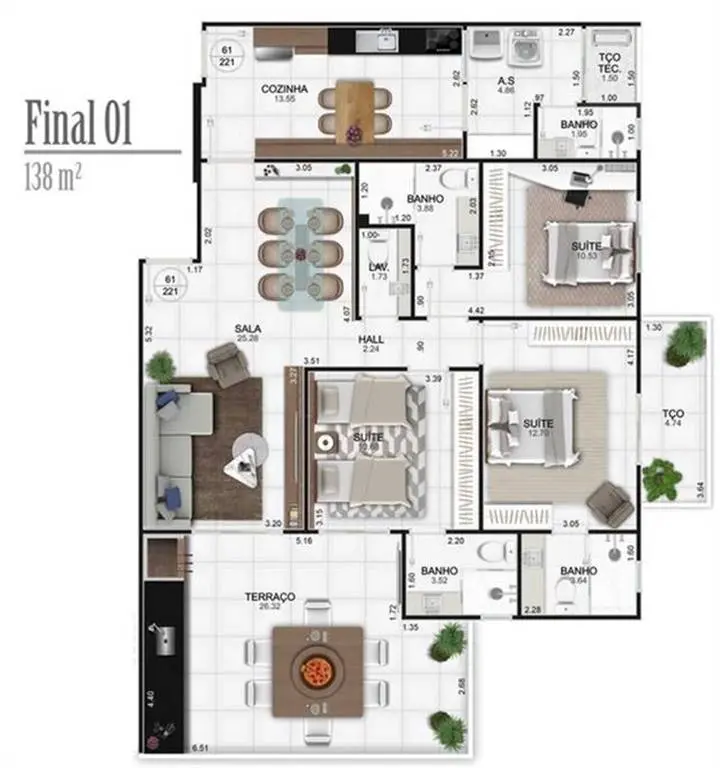 Apartamento, 3 Dorms à Venda, Caiçara, 138 m² por R$ 1.700.000,00