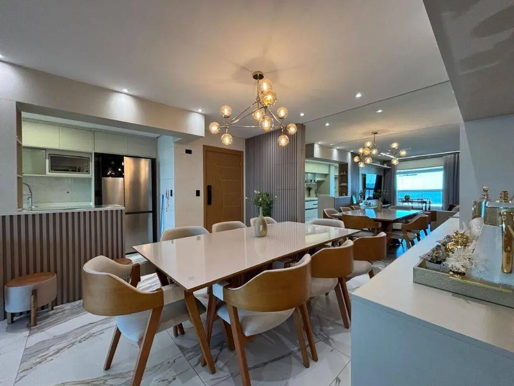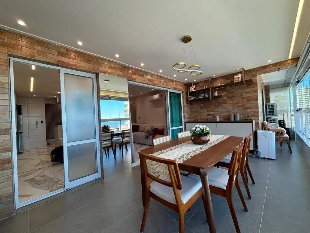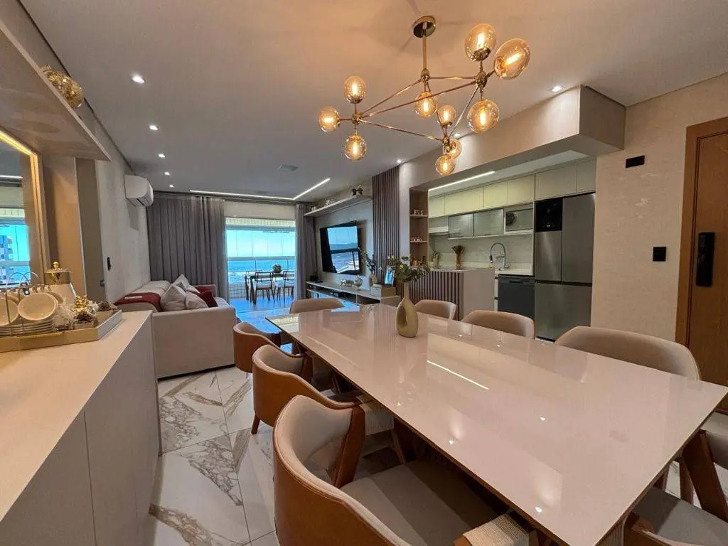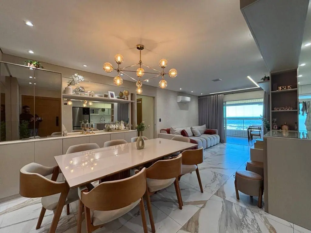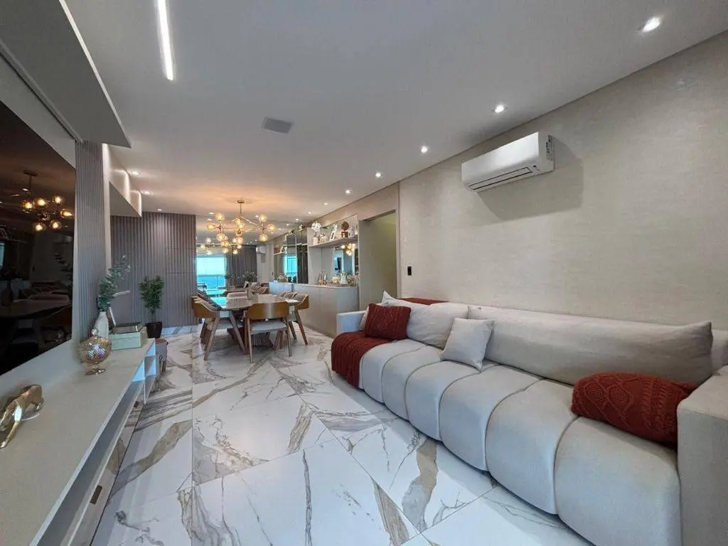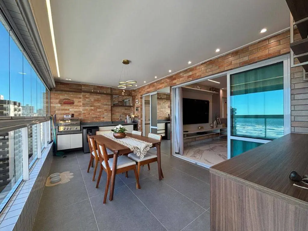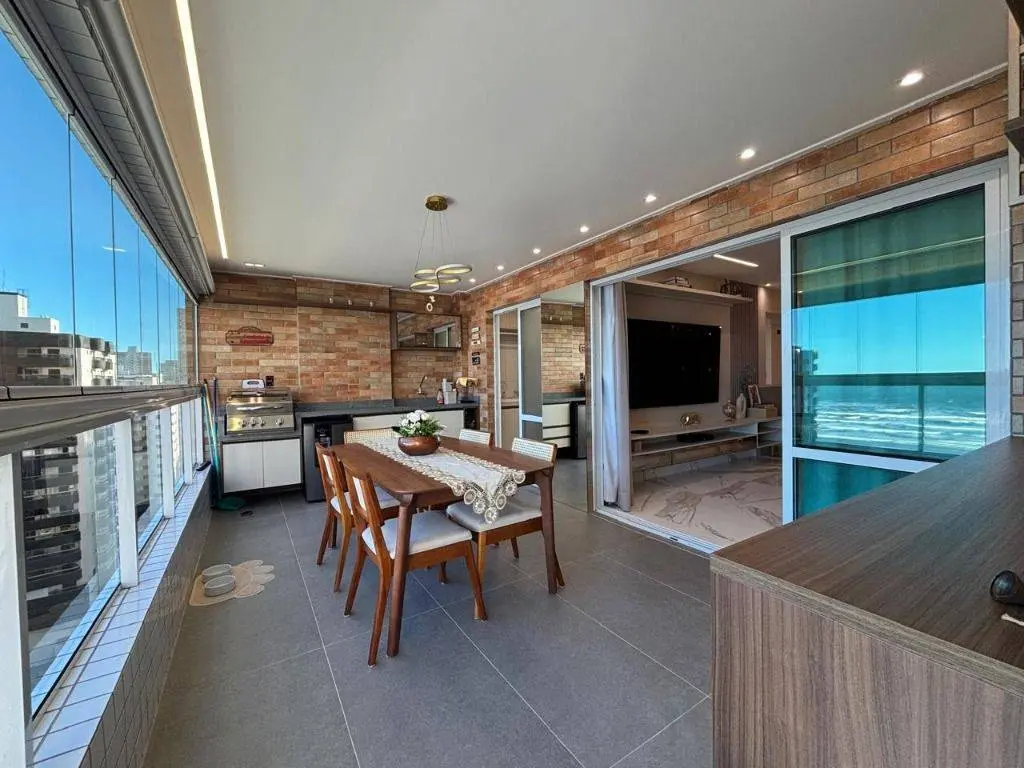 Em andar alto, a poucos metros da orla, com vista panorâmica do mar, sala ampla para dois ambientes, com piso em porcelanato, decoração sofisticada com armários planejados, persianas, lustres e acabamentos de alto padrão. A varanda gourmet envidraçada amplia o espaço e valoriza a vista mar, ideal para confraternizações e momentos relaxantes.
