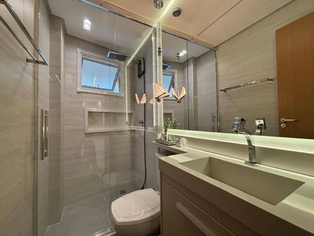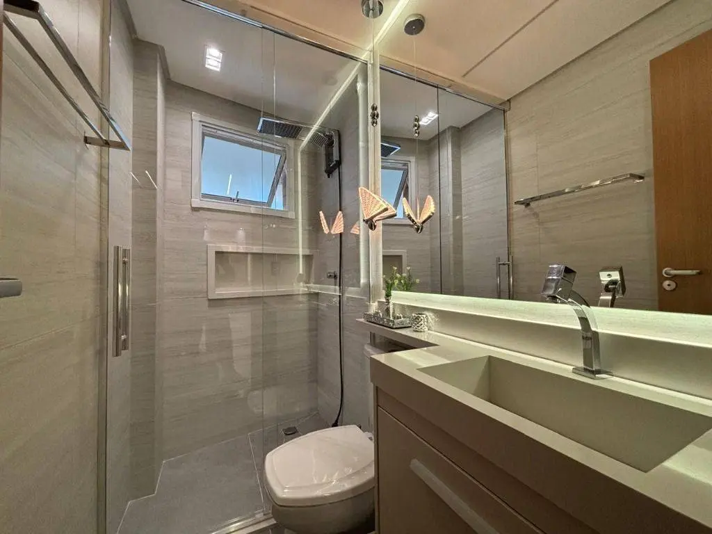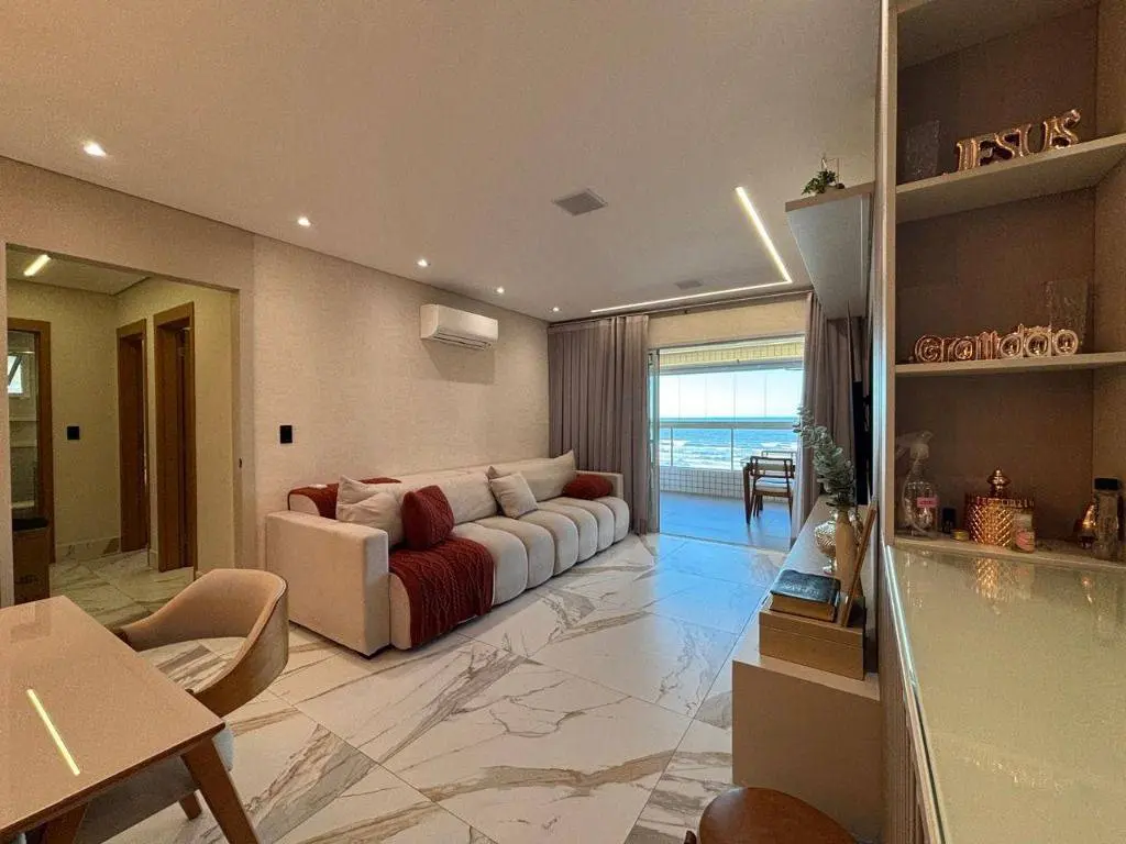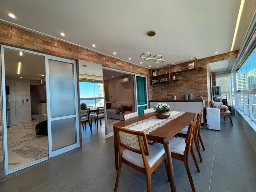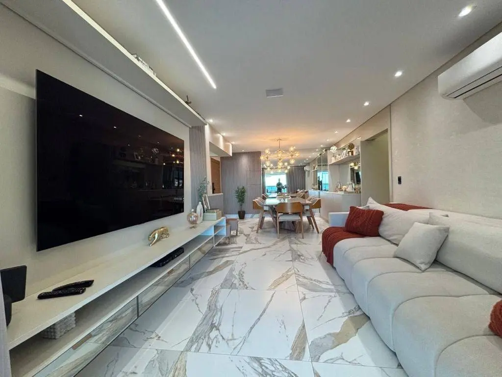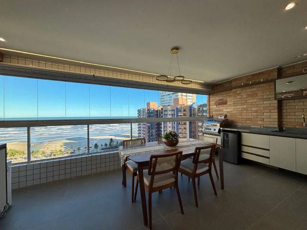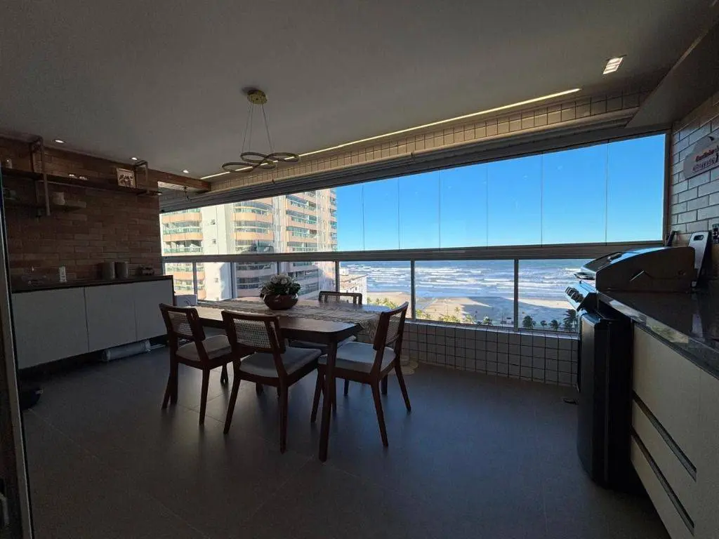 Em andar alto, a poucos metros da orla, com vista panorâmica do mar, sala ampla para dois ambientes, com piso em porcelanato, decoração sofisticada com armários planejados, persianas, lustres e acabamentos de alto padrão. A varanda gourmet envidraçada amplia o espaço e valoriza a vista mar, ideal para confraternizações e momentos relaxantes.