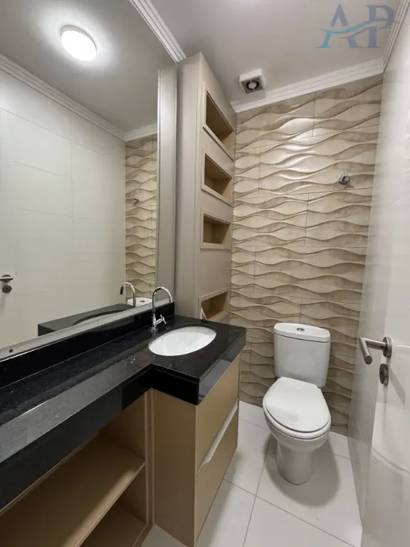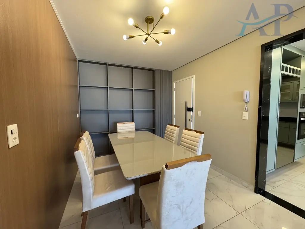 Mobiliado, com tre^s dormito´rios, todos sui´te, um deles com closet, cozinha bem ampla e toda equipada, a´rea de servic¸o, lavabo e Tre^s vagas de garagem privativas e ja´ com pre´-disposic¸a~o para carro Ele´trico.