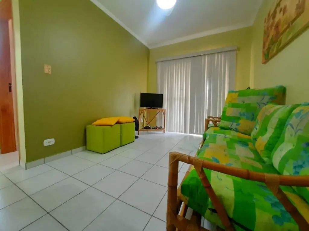 Aconchegante apartamento mobiliado ( vai sair apenas TV e Geladeira ) de 1 dormitório Prédio frente mar em Jardim Real Praia Grande SP !
