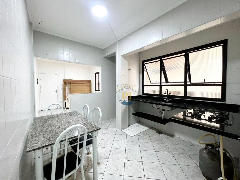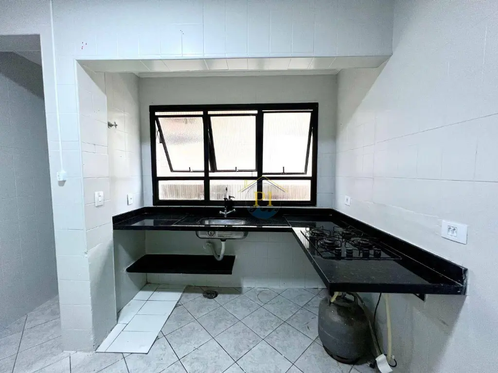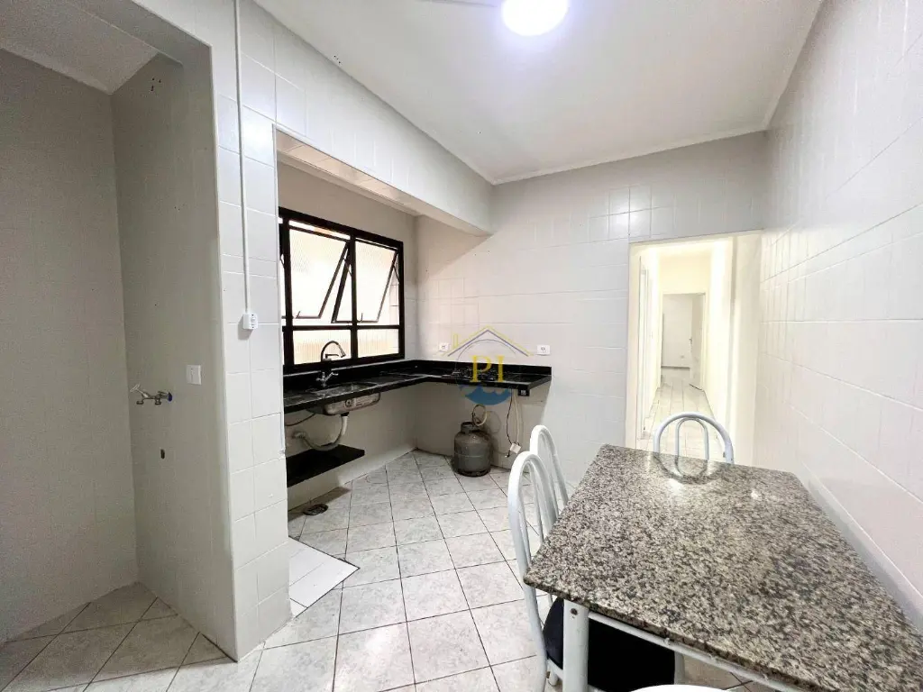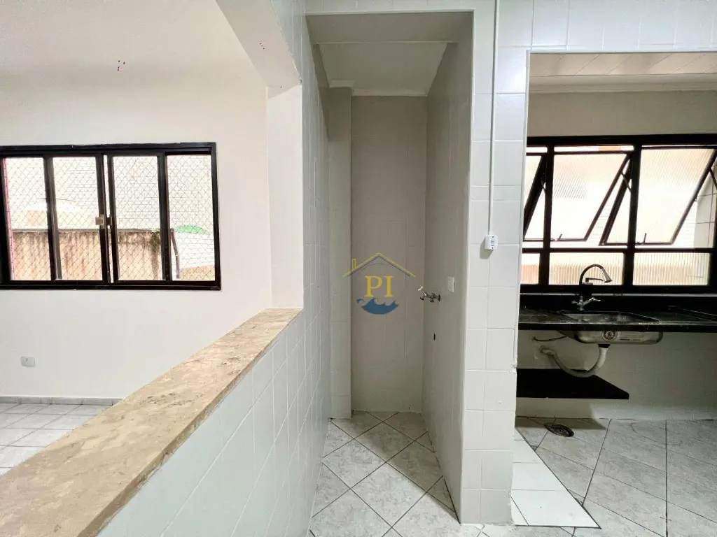 Apartamento com sala, cozinha, área de serviço, 2 dormitórios, banheiro social e 1 vaga de garagem. Prédio com salão de festas e ótima localização, próxima ac praia e ao mercado Extra da Guilhermina.