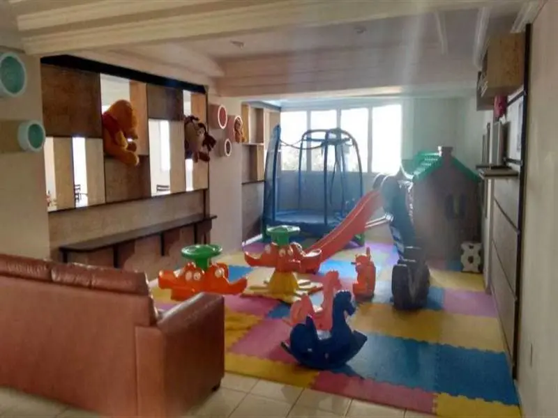 3 dormitórios, sendo os 3 suítes, sala, cozinha, lavabo, área de serviço e 4 vagas de garagem privativa, piscina, churrasqueira, cinema.