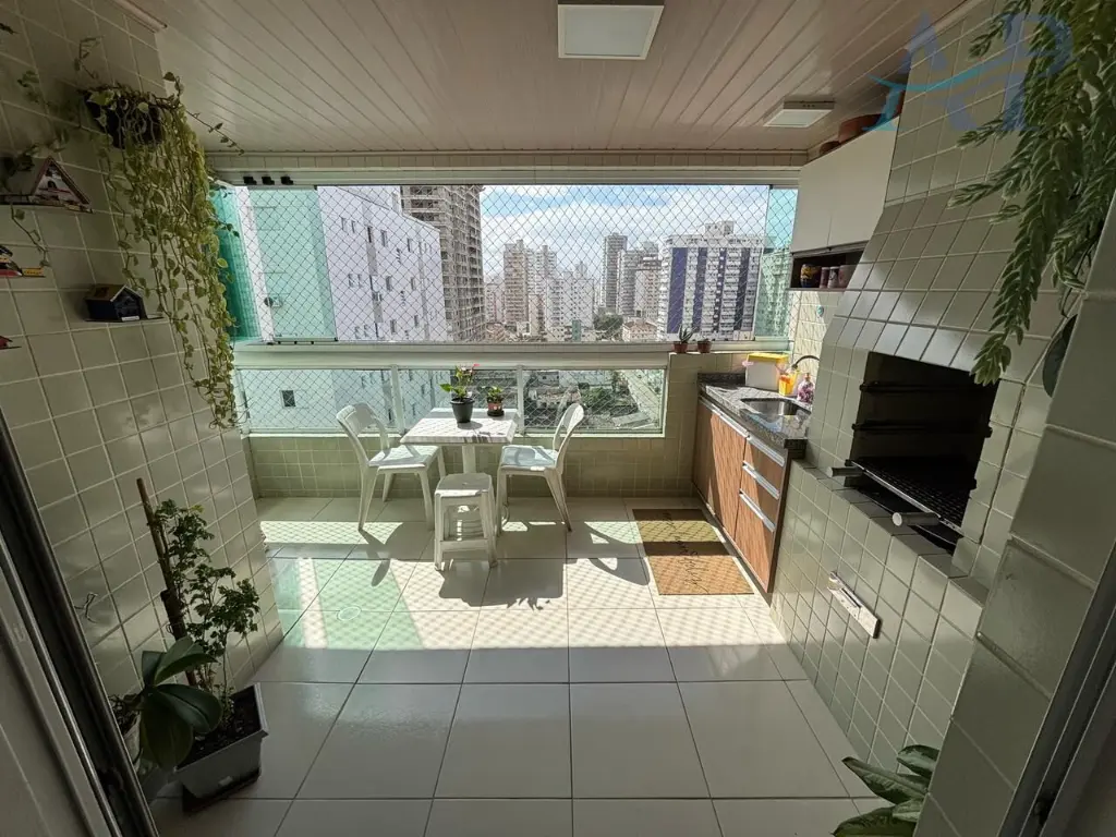 Andar alto, varanda Gourmet ampla já com fechamento de vidro, churrasqueira à carvão, de frente para a rua e com sol da manhã.