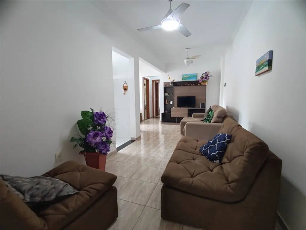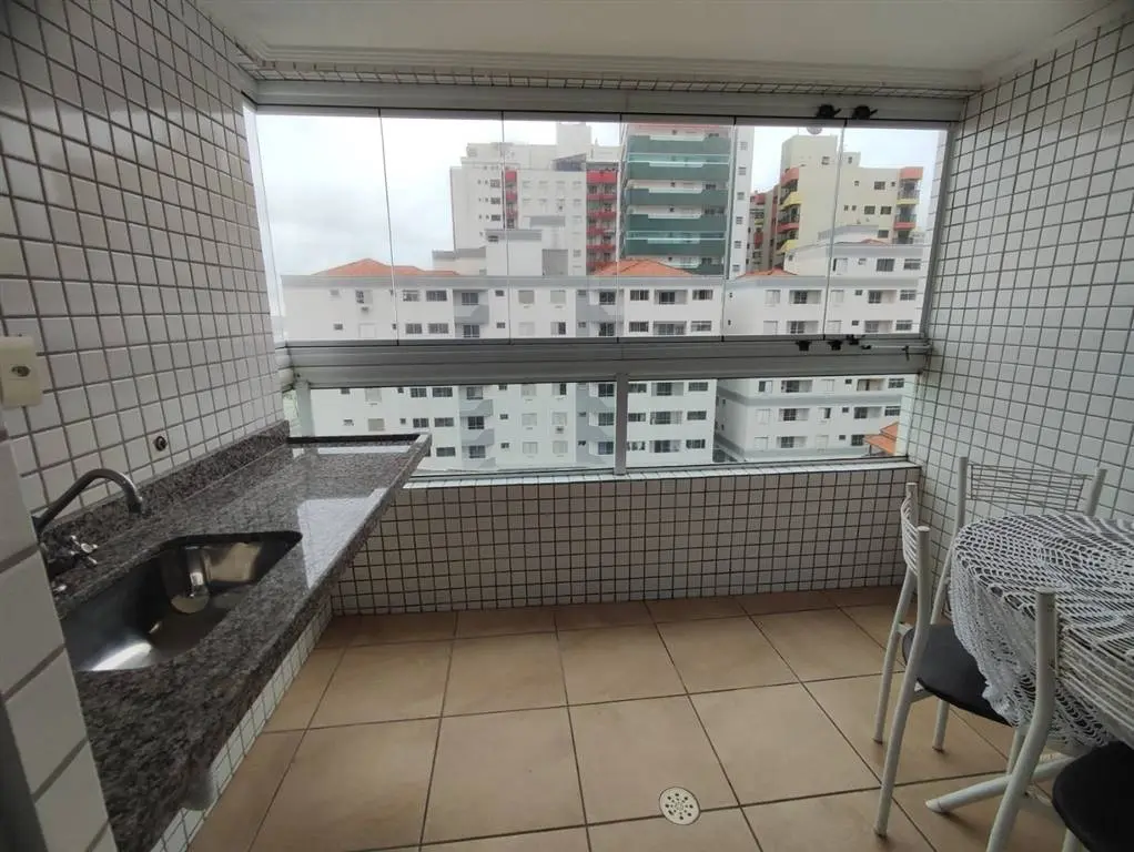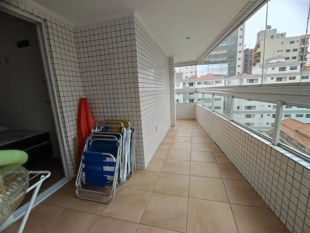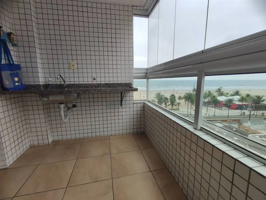 Apartamento de 2 dormitórios sendo 1 suíte, sala 2 ambientes, 2 sacadas envidraçadas e com vista definitiva para a praia, cozinha com armários, banheiros social e da suíte com box, área de serviço separada da cozinha.
