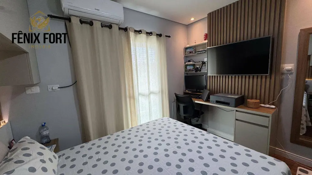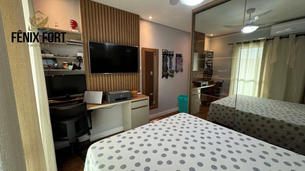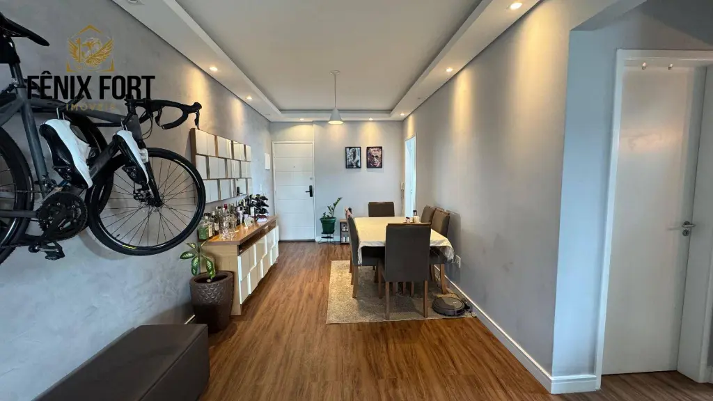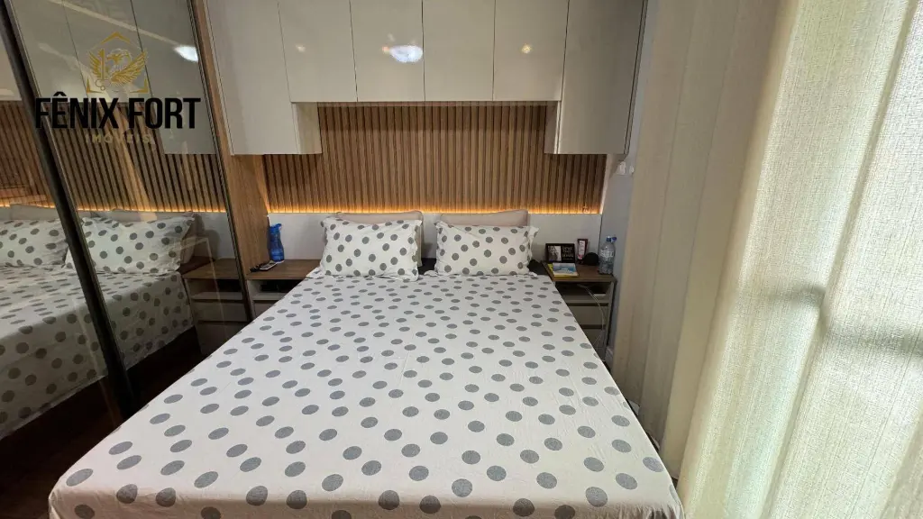 O imóvel conta com 100,00m² de área útil, mobiliado, distribuídos em 2 dormitórios sendo 1 suíte, sala dois ambientes com sacada gourmet com churrasqueira, cozinha espaçosa, banheiro social, área de serviço e 2 vagas de garagem.