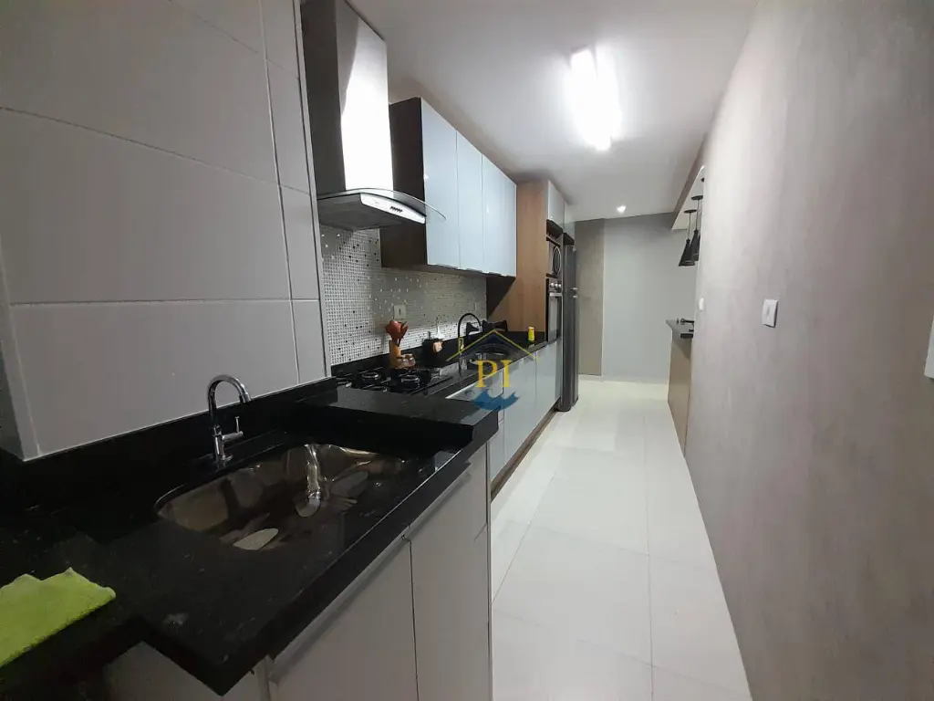 Com Sala 2 ambientes, Sacada Gourmet envidraçada, Cozinha, Banheiro Social, Área de Serviço e 1 Vaga de Garagem. Andar alto. Armários planejados. Vista mar