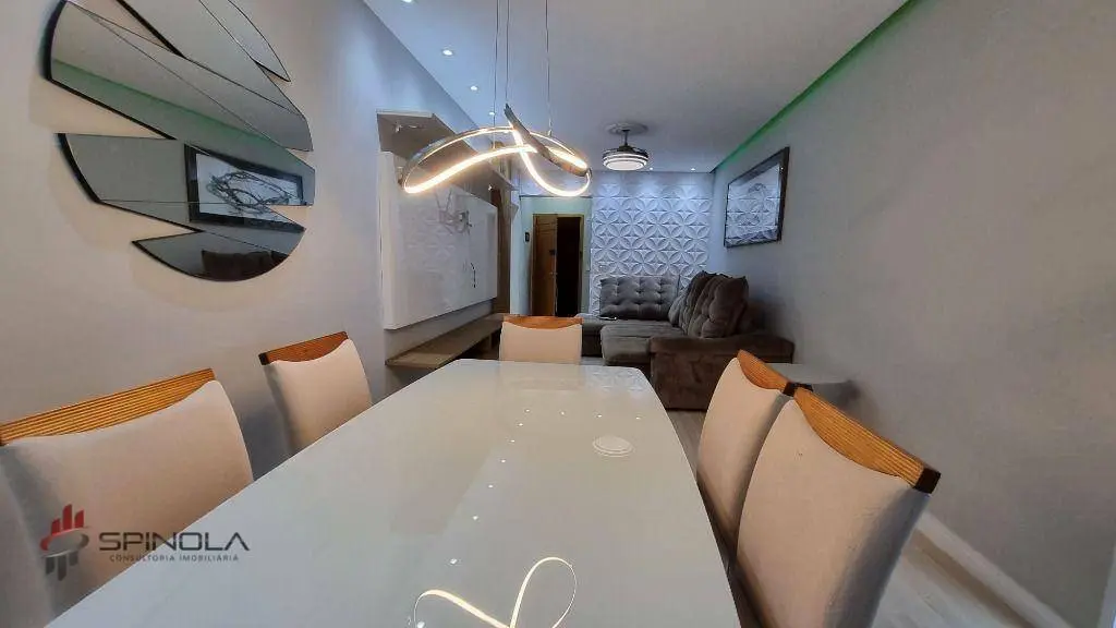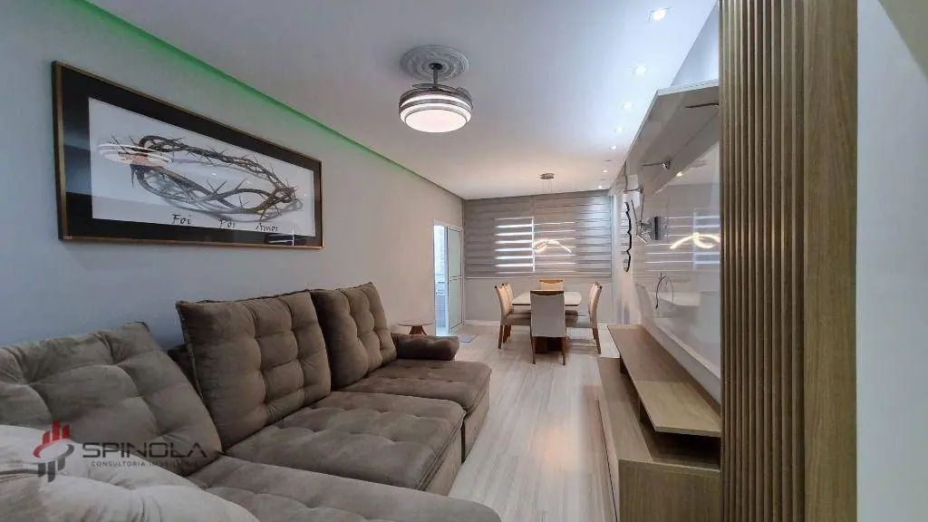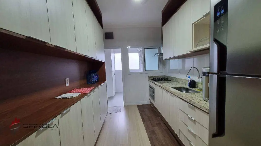 Este apartamento possui 100 m² de área útil distribuídos em 2 dormitórios sendo 2 suítes, 1 sala, 2 banheiros, 1 lavabo, 2 sacadas, 1 cozinha, mobiliado, área de serviço, garagem para 2 automóveis.