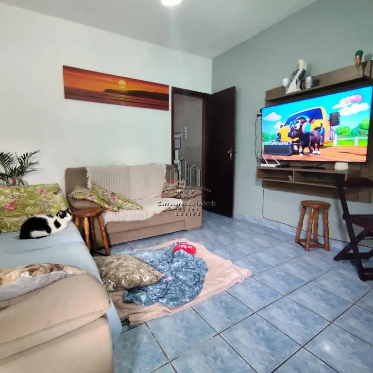 Casa geminada a venda em Praia Grande com 2 imóveis, na frente quarto, sala, cozinha e 1 banheiro e edícula nos fundos com lavanderia, churrasqueira, 1 quarto e 1 banheiro .