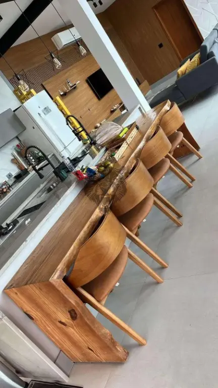 Cozinha conceito aberto integrada à sala de jantar e TV