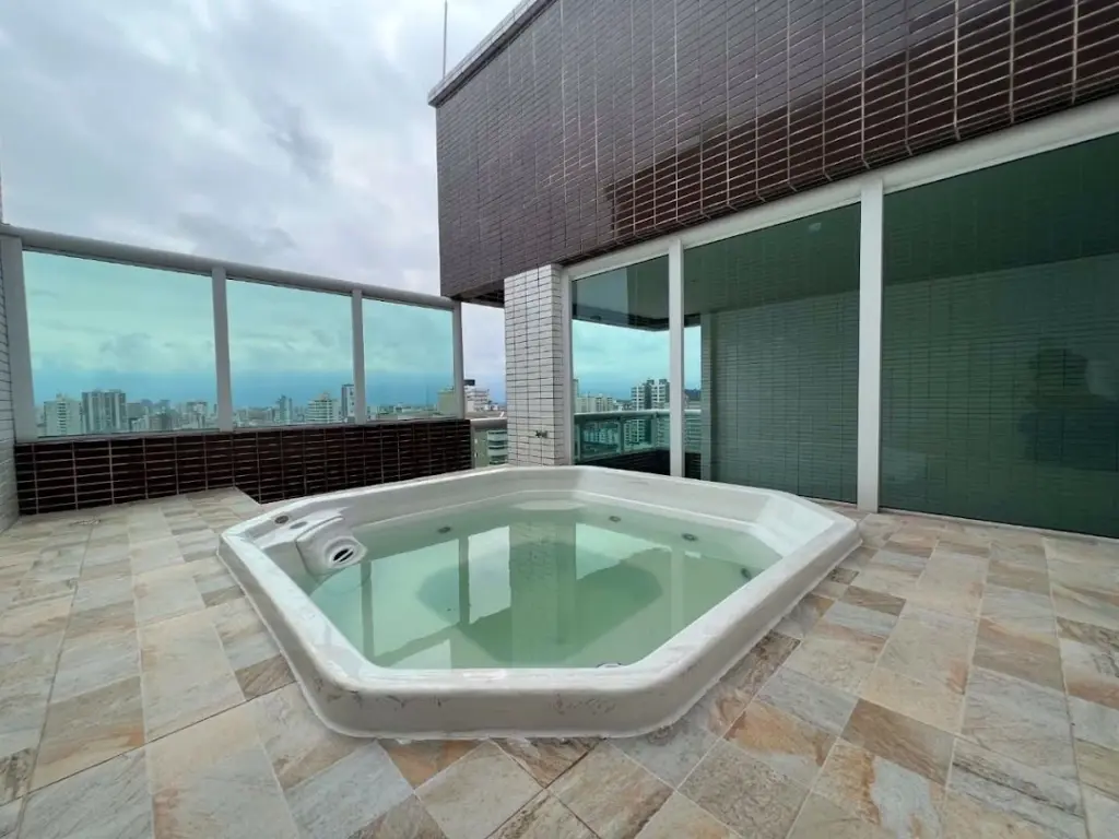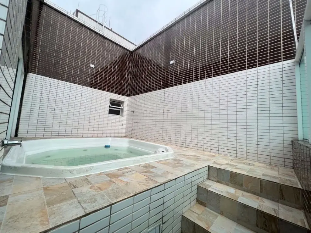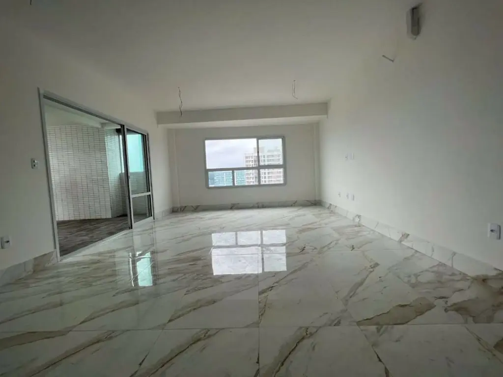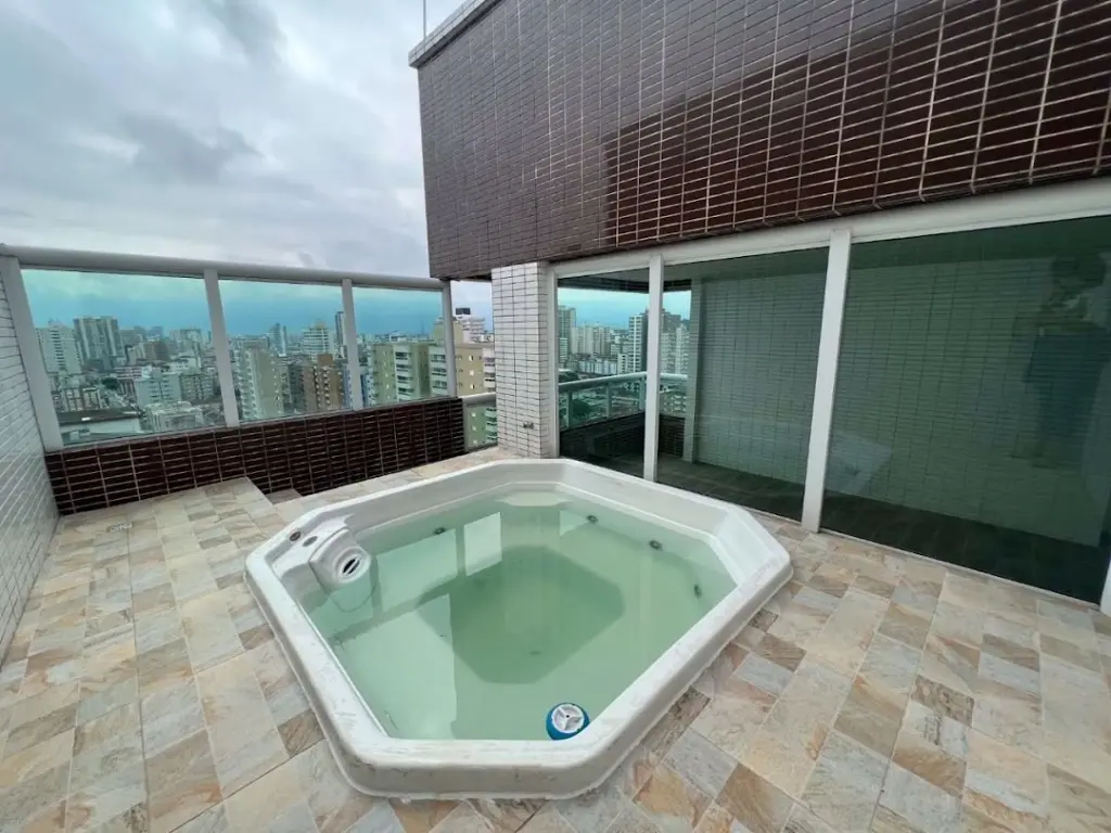 COBERTURA DUPLEX NO CANTO DO FORTE EM PRAIA GRANDE/SP - Com 166,26m² de área útil distribuídos em (piso superior) sala dois ambientes piso em porcelanato, varanda ampla com espaço gourmet e churrasqueira, jacuzzi, cozinha, lavabo, área de serviço, área técnica, escada com corrimão em vidro para o piso inferior ; (piso inferior) com 4 dormitórios sendo 3 suites com sacada e vista livre, entrada privativa e 3 vagas privativas.