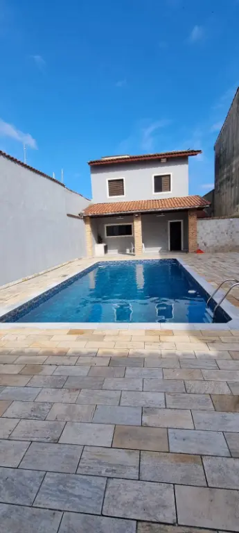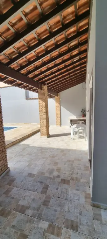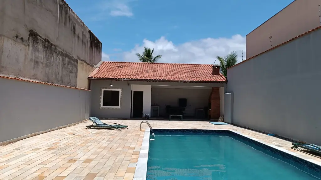 Casa de alto padrão, com piscina de 8x4, 4 quartos, 3 banheiros com gabinetes, lavabo com gabinete, sala grande para 3 ambientes. Garagem coberta. Área de serviço, churrasqueira. Quarto de despejo. Em condomínio fechado em frente à praia, no bairro Campos Elíseosem Santa Terezinha. Região tranquila, com moradores fixos.