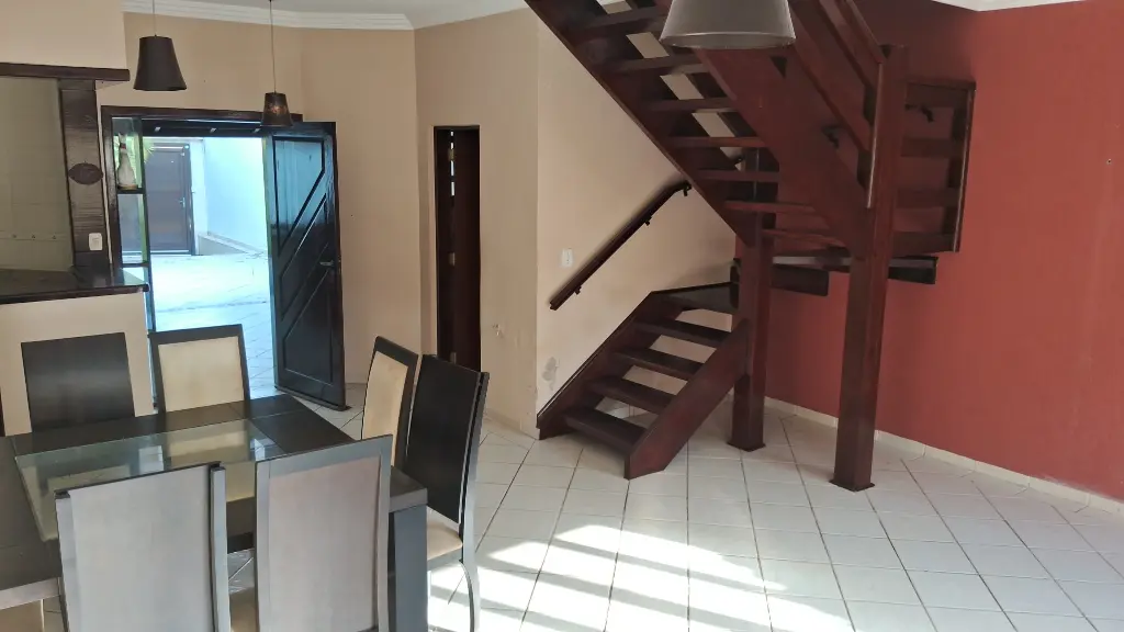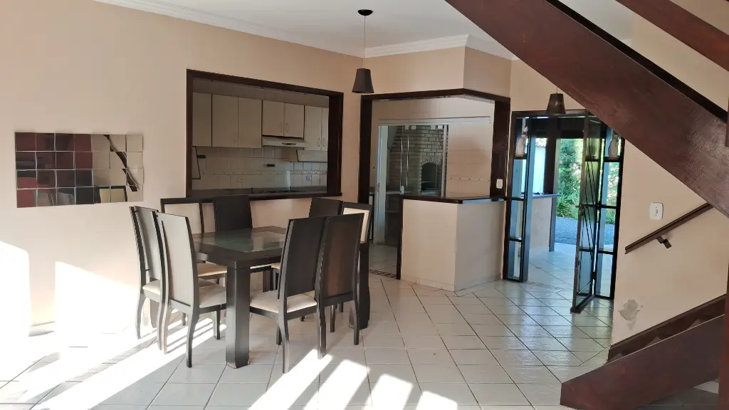 Conceito Integrado: Sala 2 ambientes conectada a uma cozinha moderna, perfeita para receber amigos e família. O charme extra fica por conta da escada em madeira.
